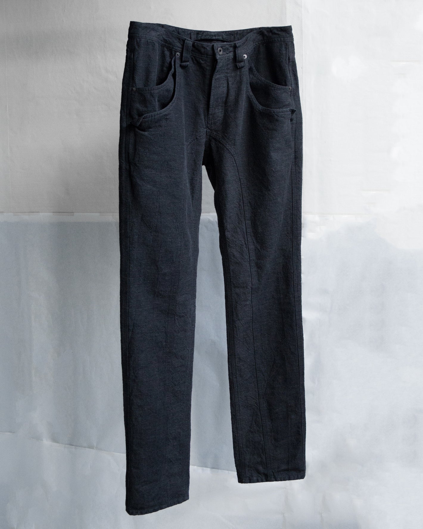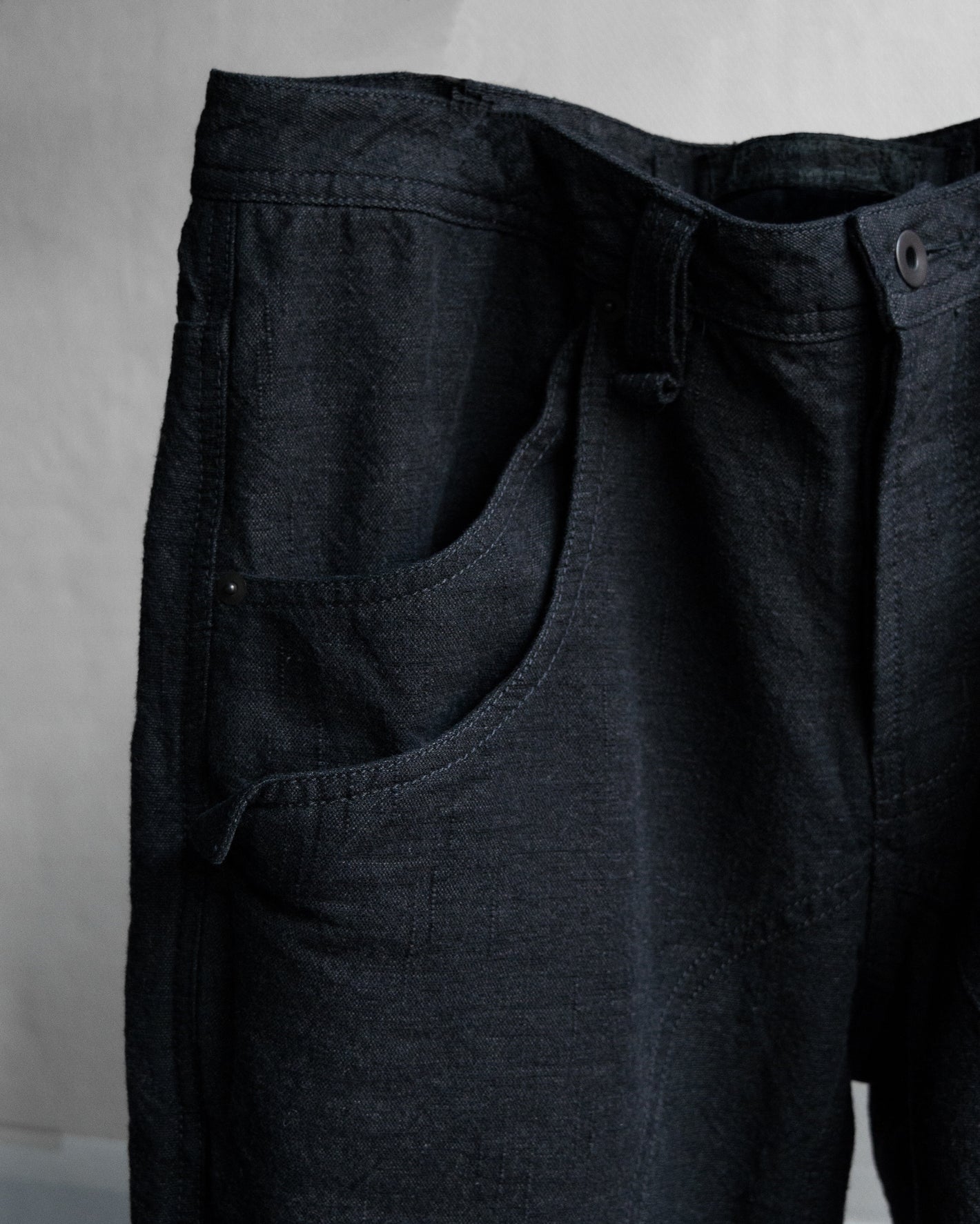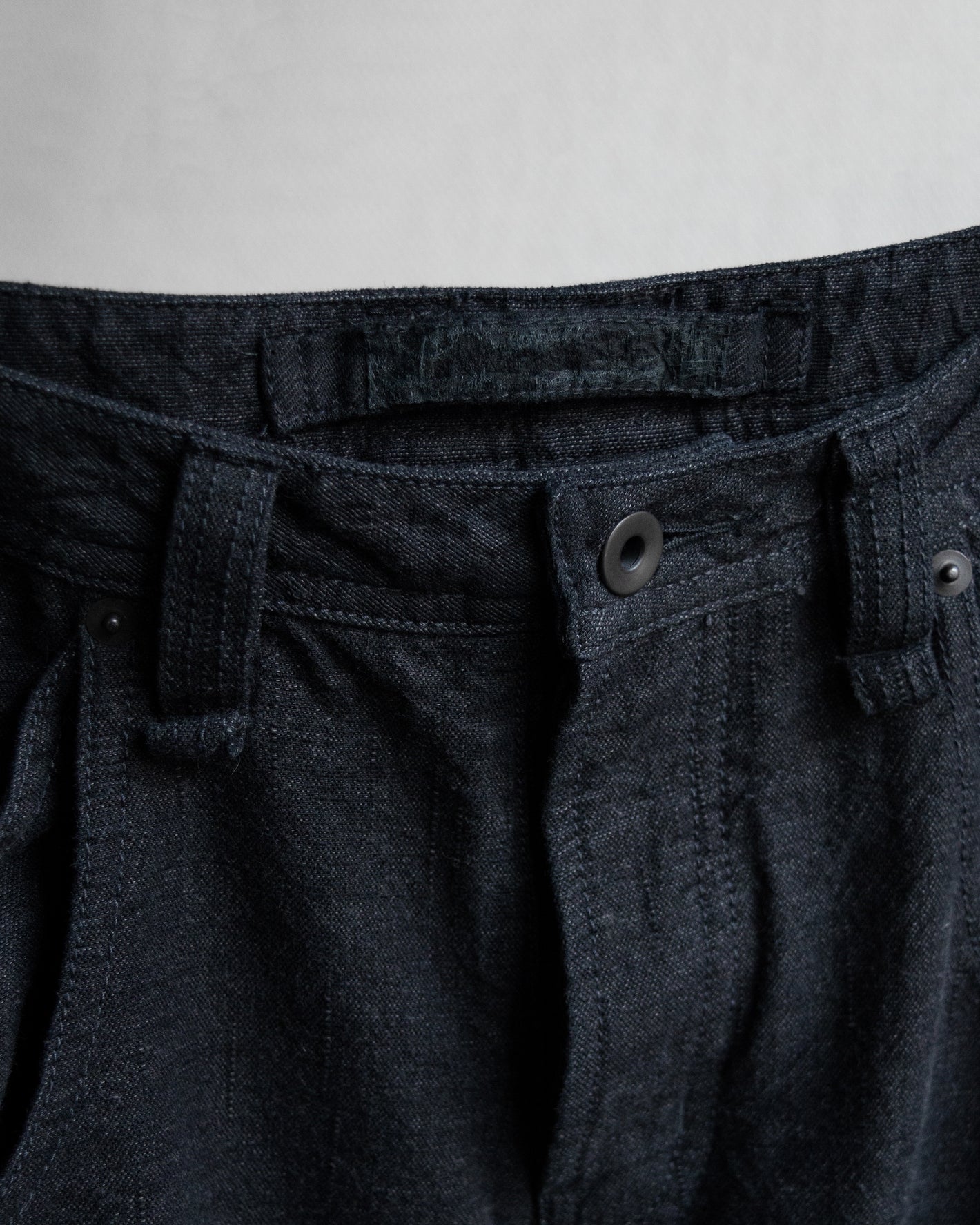 Metal button fly, 2 tier beltloop waist