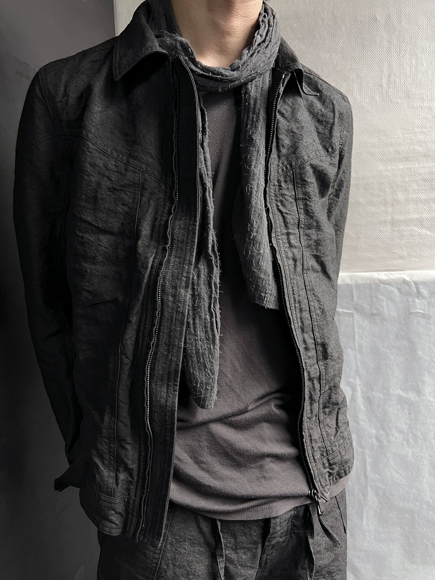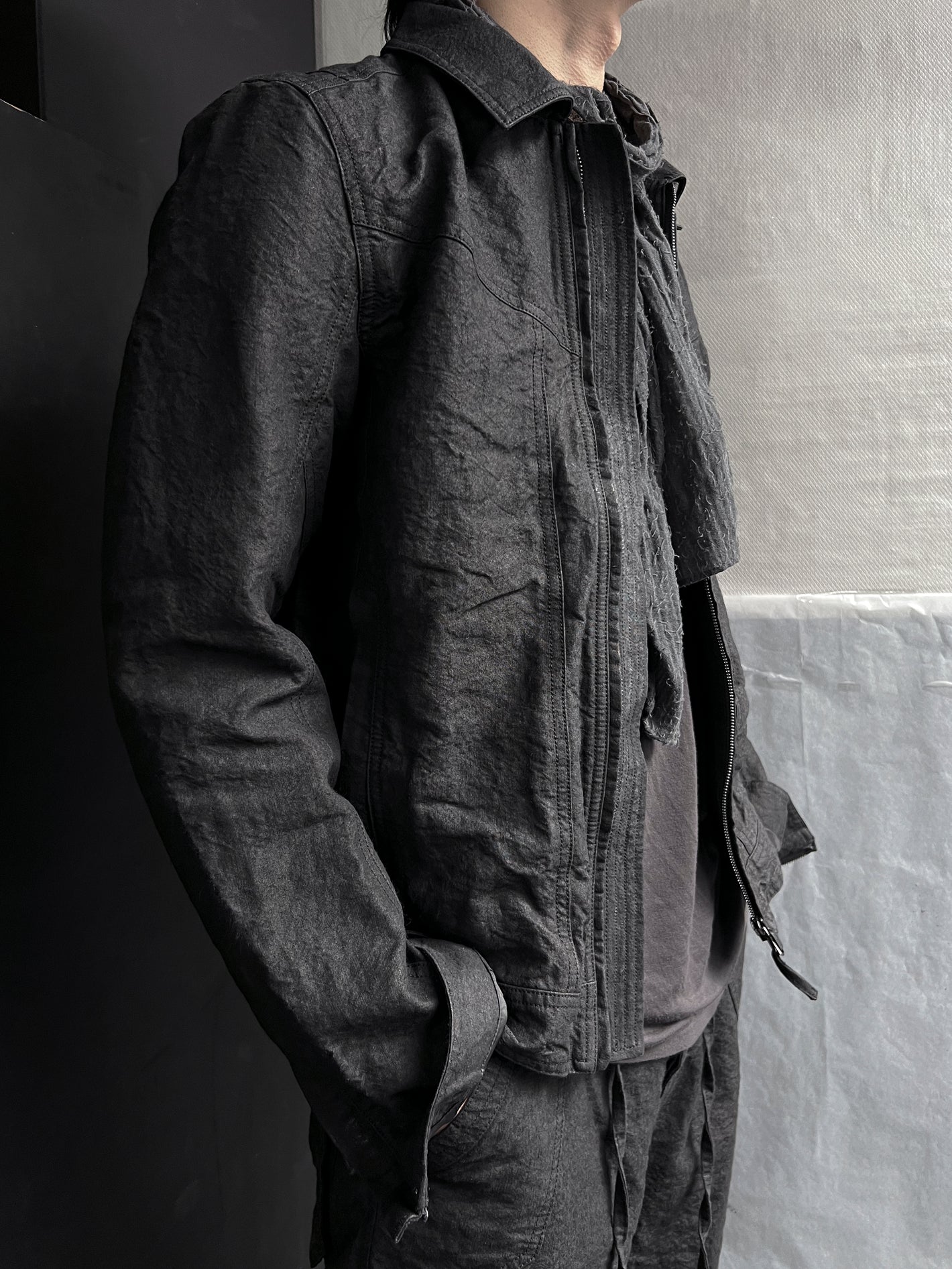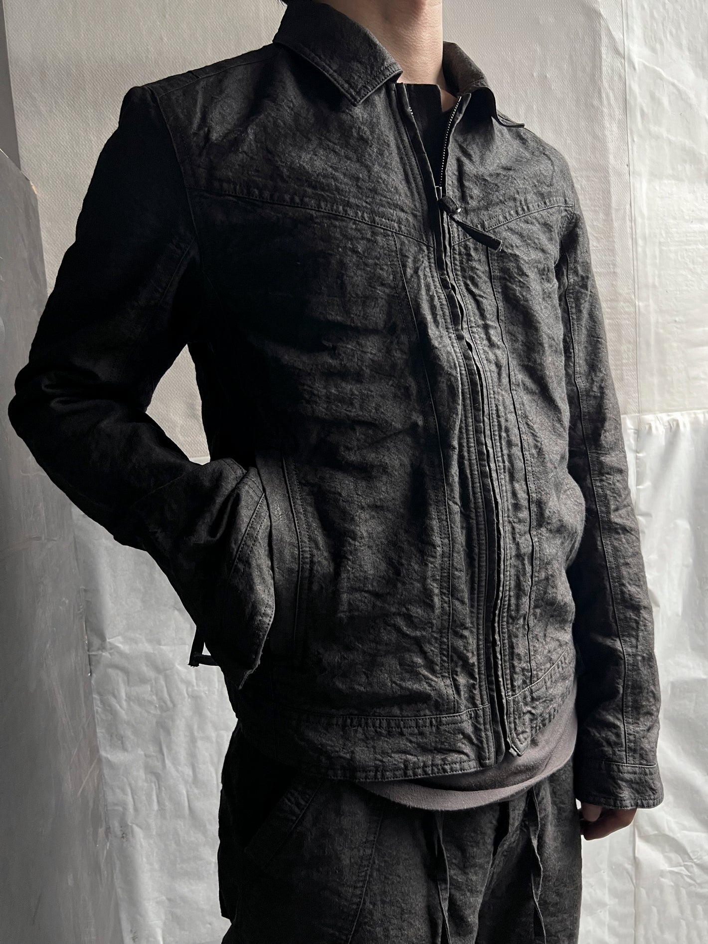 Blouson jacket in high density Washi paper linen fabric